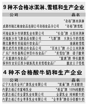 中新網(wǎng)6月23日電 北京娛樂(lè)信報(bào)今天引述中央電視臺(tái)的消息稱,國(guó)家質(zhì)檢總局昨天公布冰淇淋、雪糕、酸牛奶質(zhì)量抽查結(jié)果:冰淇淋和雪糕的抽樣合格率是71.1%,酸牛奶抽樣合格率為84.1%。