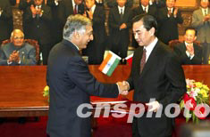 溫家寶說,我們今天將簽署的《中印關(guān)系原則和全面合作宣言》,是一份綱領(lǐng)性文件,它將確立中印關(guān)系的目標(biāo)和指導(dǎo)原則,全面規(guī)劃兩國在各個(gè)領(lǐng)域的合作。它標(biāo)志著中印關(guān)系進(jìn)入一個(gè)新的發(fā)展階段。