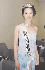 據(jù)當(dāng)?shù)厝A文媒體報(bào)道,加拿大倫敦市十九歲女生梁珍妮,可謂天生麗質(zhì),經(jīng)任職的模特兒機(jī)構(gòu)一再慫恿下,梁珍妮報(bào)名參加由加拿大國(guó)家選美大會(huì)主辦的2003年選美盛會(huì),經(jīng)過(guò)大會(huì)審核后獲得參選資格,并且于六月二十日和二十一日兩晚,經(jīng)過(guò)預(yù)賽最后正式進(jìn)入準(zhǔn)決賽,代表加拿大Ingersol市與其他參選者角逐“加拿大妙齡小姐”的頭銜。