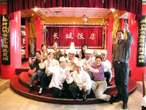 圖為莫斯科長城飯店員工慶祝北京解除旅游警告(莫斯科華人報圖)