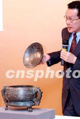 香港佳士得將在7月7日舉行《中國宮廷御制藝術精品》拍賣會,6月26日展示屆時將推出的西周晚期青銅器,估價約五百萬港元。中新社記者 洪少葵