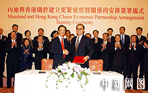 中新社香港六月二十九日電 國(guó)務(wù)院總理溫家寶今天在此間說(shuō),《內(nèi)地與香港關(guān)於建立更緊密經(jīng)貿(mào)關(guān)系的安排》一共有三個(gè)方面內(nèi)容,包括了貨物貿(mào)易、服務(wù)貿(mào)易和貿(mào)易投資便利化;灸繕(biāo)是∶逐步取消貨物貿(mào)易的關(guān)稅和非關(guān)稅壁壘,逐步實(shí)現(xiàn)服務(wù)貿(mào)易自由化,促進(jìn)貿(mào)易投資便利化,以提高內(nèi)地與香港之間的經(jīng)貿(mào)合作水平,實(shí)現(xiàn)共同發(fā)展。