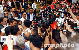 六月三十日,國務院總理溫家寶訪問在受非典型肺炎影響最嚴重的社區(qū)淘大花園,受到居民夾道歡迎。中新社記者 潘索菲 攝