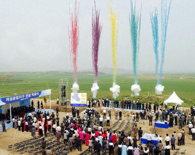 朝韓合作的朝鮮開(kāi)城工業(yè)園區(qū)的計(jì)劃,30日上午在距離漢城七十公里的朝鮮開(kāi)城直轄市行了隆重的破土開(kāi)工典禮。
