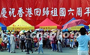 香港慶祝回歸六周年在維園舉辦大型慶;顒,吸引眾多市民頭頂烈日參與嘉年華場內(nèi)游戲活動。洪少葵 攝