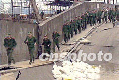 險情發(fā)生后,市政府立即啟動緊急搶險預(yù)案程序組織搶險。市委副書記、市長韓正昨天下午和今天凌晨兩次趕往現(xiàn)場,要求各方全力以赴,盡快排除險情,確保安全。韓正指出,突發(fā)事故對我們來說是一次考驗。處理突發(fā)險情關(guān)鍵在于有力的現(xiàn)場指揮,果斷的搶險措施和正確的技術(shù)支撐。他要求有關(guān)方面迅速采取措施,做好各項預(yù)案,并隨時進行現(xiàn)場監(jiān)測。要加強協(xié)調(diào)、各方配合,爭取在最短的時間內(nèi)排除險情。