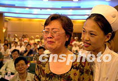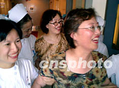 中新社廣州七月二日電 (記者王華)廣東省最后三名非典病人今天上午全部康復(fù)出院,患者與醫(yī)護(hù)人員相互擁抱慶賀。廣東省副省長雷于藍(lán)等有關(guān)負(fù)責(zé)人參加了歡送會。