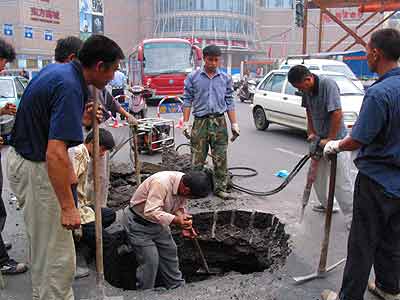 據(jù)介紹,南京的地質(zhì)狀況較復(fù)雜,地下水位高,有較多的古河道及大量含水砂層、斷裂破碎帶、軟流塑地層等不同地質(zhì)情況。昨日塌陷的兩處位于新街口鬧市區(qū),一處在三元巷加油站門口,另一處在新街口轉(zhuǎn)盤的東南角。兩處塌陷時間大約在下午4時左右,塌陷后沒有造成人員傷亡,但給新街口的交通造成一定影響。市政部門立即在塌陷處設(shè)置了警示標(biāo)志,并有交警在現(xiàn)場指揮交通。下午5時多,南京市政110的趕來搶修。