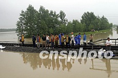 七月六日,國務(wù)院副總理回良玉(圖左1)專程到安徽滁州,看望已得到安全轉(zhuǎn)移的受災(zāi)群眾。中新社記者:盛佳鵬