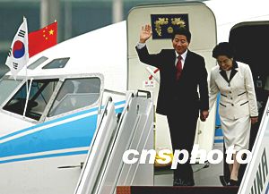 中新社北京七月七日電 應(yīng)中國(guó)國(guó)家主席胡錦濤的邀請(qǐng),韓國(guó)總統(tǒng)盧武鉉今天上午抵達(dá)北京,開(kāi)始對(duì)中國(guó)進(jìn)行為期四天的國(guó)事訪問(wèn)。