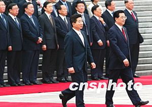 會談前,胡錦濤在人民大會堂東門外廣場為盧武鉉訪華舉行了歡迎儀式。會談后,兩國元首出席了《中國工程院和韓國工程院工程科技合作諒解備忘錄》等三個(gè)文件的簽字儀式,并共同會見了中外記者。