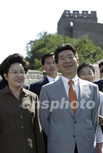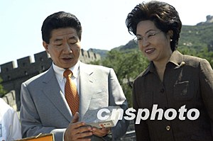 盧武鉉與夫人登上北京八達(dá)嶺長城。中新社記者:毛建軍  盧武鉉與夫人登上北京八達(dá)嶺長城,體驗(yàn)“不到長城非好漢”的美妙感受。中新社記者:毛建軍