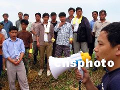 7月9日,蚌埠水利設(shè)計(jì)院專家許曉松來(lái)到行洪口大堤,為防汛隊(duì)員講解護(hù)堤應(yīng)注意的技術(shù)問(wèn)題,不讓洪水輕易入侵行洪區(qū)3.8萬(wàn)人的家園。淮河蚌埠段淮堤陳子嘴行洪口長(zhǎng)1500米,在淮河更大的洪峰到來(lái)時(shí),將在該行洪口炸壩泄洪,以確保城區(qū)安全。劉兵生 攝