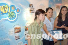 由香港康樂及文化事務署舉辦的“海上動感藝廊”活動,七月十二日在香港開幕,該活動目的是為繁忙的都市開辟另類的藝術(shù)空間,讓市民在日常生活中享受藝術(shù)樂趣。圖為裝置藝術(shù)設計者與作品。中新社記者:錢興強
