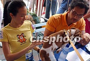 香港愛護(hù)動物協(xié)會七月十三日在香港舉行“寶寶健康快樂之星選舉”,由專業(yè)獸醫(yī)和知名人士擔(dān)任評判,香港歌星莫文蔚和藝員陳啟泰擔(dān)任嘉賓評判。中新社記者:錢興強(qiáng)