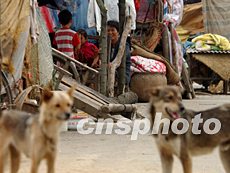 七月中旬的淮河洪水災區(qū),背井離鄉(xiāng)的受災百姓如今在路邊堤上臨時棲身。晴天曝曬使地面溫度高達攝氏四十度以上,塑料棚內(nèi)悶熱難當。政府日前正從各地調(diào)集救災帳篷。中新社記者:賈國榮