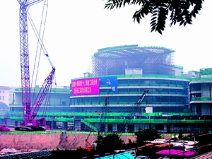 雖然工程量巨大,但施工顯得井井有條,現(xiàn)場(chǎng)幾乎聽不到機(jī)器的轟鳴聲。與工地一墻之隔的居民們甚至沒有察覺到大劇院已進(jìn)入最緊張的施工階段,對(duì)記者的到來(lái)非常好奇。