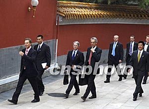 圖:英國(guó)首相布萊爾一行走進(jìn)北京中南海