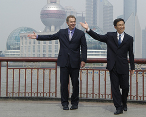 中新網(wǎng)7月23日電 英國首相托尼·布萊爾于2003年7月22日下午對上海進行了訪問。布萊爾此行的重點集中在商業(yè)性事務(wù),旨在增進英國對上海乃至中國經(jīng)濟發(fā)展的推動作用。這是布萊爾第一次與上海新一代領(lǐng)導(dǎo)層的接觸。雙方探討了加強英國與上海之間日益增長的合作關(guān)系。
