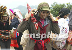 來自政府和民政部門的救災物資二十三日陸續(xù)抵達云南大姚縣,救災人員經過崎嶇險要的山間小路為地處震中的小興廠村災民運送物資。中新社記者:毛建軍