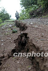 二十三日云南省大姚縣依然余震不斷,地震使山體出現(xiàn)裂縫。中新社記者:毛建軍