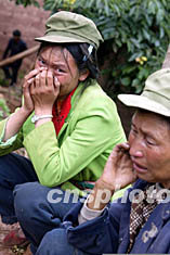 地處大山深處的云南省大姚縣曇華鄉(xiāng)小興廠村是此次地震的中心,有九人罹難,村民為失去親人而痛哭。中新社記者:毛建軍