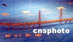 據(jù)悉,東海大橋是中國第一座真正意義上的跨海大橋,全長三十一公里,是上海洋山深水港工程的重要組成部分,全部工程由中國自行設(shè)計建設(shè)。主橋(V標段)是由兩座一百四十點二米的“人”字型主塔組成的斜拉橋,四百二十米跨度,規(guī)模上同上海南浦大橋、盧浦大橋相近。