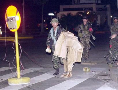 幾小時以后,數(shù)十名武裝軍人于27日凌晨占據(jù)了馬尼拉市金融區(qū)內(nèi)的一座主要商業(yè)中心,并在周圍安放炸藥。