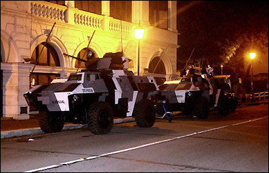 據(jù)法新社報道,阿羅約發(fā)表全國電視講話說:“我限令你們在今天下午五點之前投降繳械,回到兵營去!