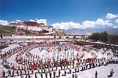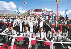 “八一”前夕,武警西藏總隊組織駐拉薩部隊官兵在布達(dá)拉宮廣場舉行“慶祝建軍七十六周年藏歌藏舞文藝匯演”,千余名武警官兵和藏族群眾跳起大型鍋莊舞,布達(dá)拉宮廣場成了歌舞的海洋。作者:趙艷志