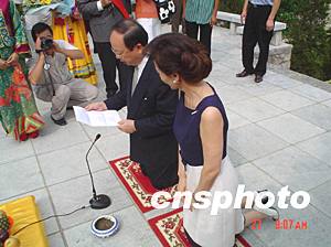 九時(shí)整,在《慈母頌》、《世上只有媽媽好》的音樂聲中,章孝嚴(yán)夫婦首先恭敬地為母親獻(xiàn)上鮮花和水果,虔誠地為母親行了三拜九叩之禮。之后,章孝嚴(yán)夫婦長跪在母親的墓前,章孝嚴(yán)把衷腸之作《祭母文》情真意切地朗聲念給母親:“哀哀吾母,育子劬勞;未見兒長,魂赴池瑤;棄世緣故,至今難曉;子思母愛,淚涌如濤;天人兩隔,倍增煎熬;母葬桂林,萬里迢迢;拔步祭掃,不因路遙;歸宗心愿,去歲始了;寸寸孝思,竟日縈繞;山清水秀,鳳凰來朝;謹(jǐn)此奉稟,永顧兒曹;臨文涕泣,萬念俱拋;嗚呼哀哉,尚饗!