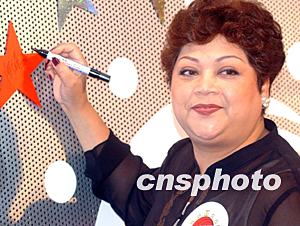 《有線娛樂(lè)新聞臺(tái)》節(jié)目主持人"肥媽"出席啟播儀式。中新社記者:錢興強(qiáng)