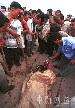 圖:辛集爆炸煙花廠遇難者親屬辨認(rèn)遺體