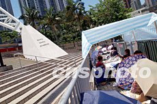 7月30日,近千香港市民在大球場(chǎng)排隊(duì),等候8月1日公開發(fā)售的“皇馬”對(duì)香港聯(lián)隊(duì)入場(chǎng)券,足球總會(huì)經(jīng)過(guò)緊急會(huì)議后,決定提早在31日晚上公開售票。作者:洪少葵