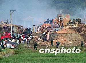 七月三十一日上午七時(shí)四十分,福建閩侯縣荊溪鎮(zhèn)一私營煙花爆竹廠發(fā)生爆炸,造成重大傷亡。爆炸面積約一千五百平方米,現(xiàn)場一片廢墟。武警、消防、公安、當(dāng)?shù)伛v軍及醫(yī)護(hù)人員,當(dāng)?shù)攸h政官員在現(xiàn)場全力搜救。中新社記者:劉可耕