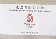 中新網(wǎng)北京8月3日電 北京時(shí)間8月3日晚21時(shí),北京2008年奧運(yùn)會(huì)會(huì)徽揭開神秘面紗——“中國印·舞動(dòng)的北京”。這是一個(gè)以中國傳統(tǒng)文化印章為載體,原創(chuàng)者為北京始創(chuàng)國際企劃公司。