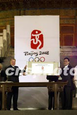 相關(guān)報道:北京奧運會會徽揭開神秘面紗 呈現(xiàn)三大特點(圖) (2003-08-03 21:05:38)