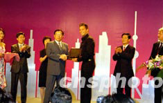 享有“拉丁王子”美稱的國際巨星瑞奇·馬丁(右三)四日成為“上海友好大使”,并獲得上海贈送的“上海城市金鑰匙”。瑞奇·馬丁是“國際名人上海行”的第一位嘉賓。作者:劉殊瑾