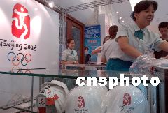 今天在各商場和首都機場出售的紀念品包括三種T恤衫、兩種帽子、黑白兩色鑰匙鏈和普通紀念章,價格從十五元到一百六十八元不等。貴重金屬紀念章則由中國金幣總公司在指定的三家金幣公司系統(tǒng)銷售,總共一萬兩千枚的金章單枚售價五百元,一百九十元一枚的銀章共有兩萬枚。會徽紀念郵品在中國集郵總公司北京營業(yè)部和北京市郵票公司發(fā)售。據北京營業(yè)部的銷售人員透露,僅上午半天時間,零售的紀念郵折和紀念封已經售罄。