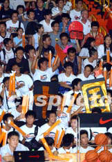 香港籃球愛好者和超級球迷,8月5日在香港修頓球場,熱烈歡迎中國國家籃球隊訓(xùn)練,為一睹偶像姚明和巴特爾高聲吶喊。中新社記者:洪少葵