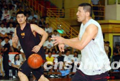 NBA超級巨星姚明和巴特爾,8月5日在香港修頓球場展開訓(xùn)練,備戰(zhàn)6日晚的澳洲勁旅墨爾本老虎隊。