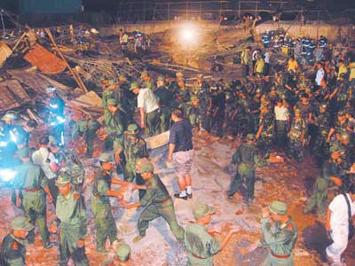 據(jù)了解,該倒塌的“廠房”是湖里區(qū)禾山鎮(zhèn)高林村村民林天厚自建、準(zhǔn)備用于出租的兩層“廠房”,建造面積兩千平方米。事發(fā)當(dāng)時(shí),正在進(jìn)行澆灌水泥作業(yè)施工工人八十余人,主要來自貴州、四川、江西、安徽等地,其中四十余人在事故發(fā)生后安全脫身。福建省省長盧展工獲悉這一事故后,已作出重要批示,要求廈門全力組織力量進(jìn)行搶救,做好善后工作,并舉一反三,結(jié)合安全工作進(jìn)行認(rèn)真檢查。