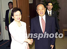 中國外交部長李肇星11日在日本東京與日本外相川口順子舉行會談,就兩國關(guān)系及雙方共同關(guān)心的國際和區(qū)域問題交換意見。中新社記者:陶光雄