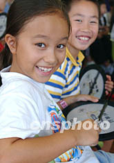 香港堅尼地小學(xué),八月十一日在香港舉行學(xué)習(xí)鼓樂活動,圖為小朋友興高采烈練習(xí)擊鼓節(jié)奏。中新社記者:錢興強(qiáng)