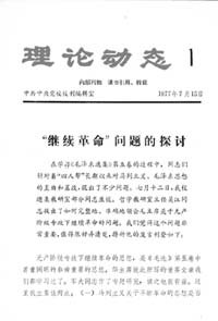 《“繼續(xù)革命”問(wèn)題的探討》一文,近4500字。文章講了兩個(gè)問(wèn)題:(一)馬列主義關(guān)于不斷革命的思想是否僅限于由民主革命不間斷地轉(zhuǎn)變?yōu)樯鐣?huì)主義革命的思想,而沒(méi)有包括社會(huì)主義條件下的不斷革命思想?(二)無(wú)產(chǎn)階級(jí)專政下繼續(xù)革命的對(duì)象、任務(wù)是什么。文章重點(diǎn)是講后面一點(diǎn)。