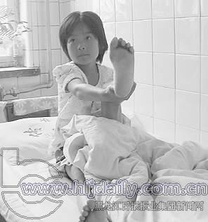11日,高明母親的臉終于舒展了一點(diǎn),因?yàn)楦呙鲹Q藥時(shí)不是那么疼了,不再撕心裂肺地哭了。在病房里高明的媽媽陳淑霞告訴記者,開(kāi)始時(shí)一換藥,雖然醫(yī)生輕手輕腳、小心翼翼的,高明還是哭得撕心裂肺,一場(chǎng)藥換下來(lái),疼得滿頭大汗。8歲的小高明向記者講述了她中毒的過(guò)程。4日晚上,她在家門前新拉來(lái)的砂土堆上玩,因?yàn)橥帘容^細(xì),她就把鞋脫了,把腳放到了土堆里,當(dāng)天晚上沒(méi)怎么樣,第二天早晨,腳上就開(kāi)始起水泡,然后水泡越來(lái)越多,越來(lái)越大,非常癢。