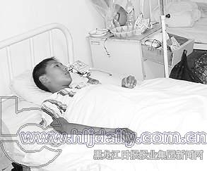 王磊今年14歲,齊齊哈爾市28中學(xué)學(xué)生,開(kāi)學(xué)上初中二年級(jí),他和父親王宇亮住在一個(gè)病房里,父子二人病情都較重,雖然現(xiàn)在二人的病情都已經(jīng)開(kāi)始好轉(zhuǎn),但離治愈出院還有一段時(shí)期。王磊告訴記者,當(dāng)天12時(shí)許,他爸爸把土卸下來(lái)之后,直接就鋪在院子過(guò)道上,由于有點(diǎn)濕,還不很平整,爸爸卸完土后,王磊就用腳平整,并墊了兩塊木板。因?yàn)槟切┩林杏泻芏嗉?xì)砂子,踩上去很舒服,他就把鞋脫了,又玩了一會(huì)兒,12時(shí)30分左右,因?yàn)橹比パa(bǔ)英語(yǔ)課,他沒(méi)有洗腳直接穿上鞋就去上課了。上課過(guò)程中,他就覺(jué)得腳火燒一樣地疼,15時(shí)許,他回到家把鞋脫了,發(fā)現(xiàn)腳已經(jīng)全紅了,第二天早晨,他腳上就起了大的水泡,又疼又癢,然后住進(jìn)203醫(yī)院。據(jù)王磊的醫(yī)生介紹,王磊的情況要重于其他孩子,可能需要手術(shù)治療。
