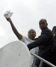 與泰勒同機(jī)抵達(dá)阿布加的還有尼日利亞前軍事領(lǐng)袖、也是利比里亞危機(jī)的首席談判代表阿布巴卡,以及西非經(jīng)濟(jì)共同體執(zhí)行秘書桑巴斯。