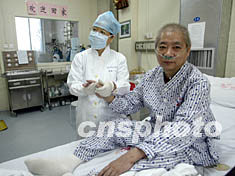 4月18日因參與治療SARS患者而感染的北京人民醫(yī)院檢驗科細菌學(xué)專家王賀,經(jīng)過多家醫(yī)院搶救治療已經(jīng)奇跡般康復(fù)。8月12日,氣色頗佳的王賀在人民醫(yī)院康復(fù)病房接受按摩治療。王賀是做了氣管切開插管手術(shù)的北京SARS患者中,僅存活的四名患者之一。中新社記者:任晨鳴