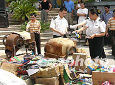 十二日,福建省在福州集中銷毀走私盜版光盤九十多萬片,以配合中國各省、市、自治區(qū)、直轄市同時舉行的2003年中國銷毀走私光盤大行動。作者:祝敏松